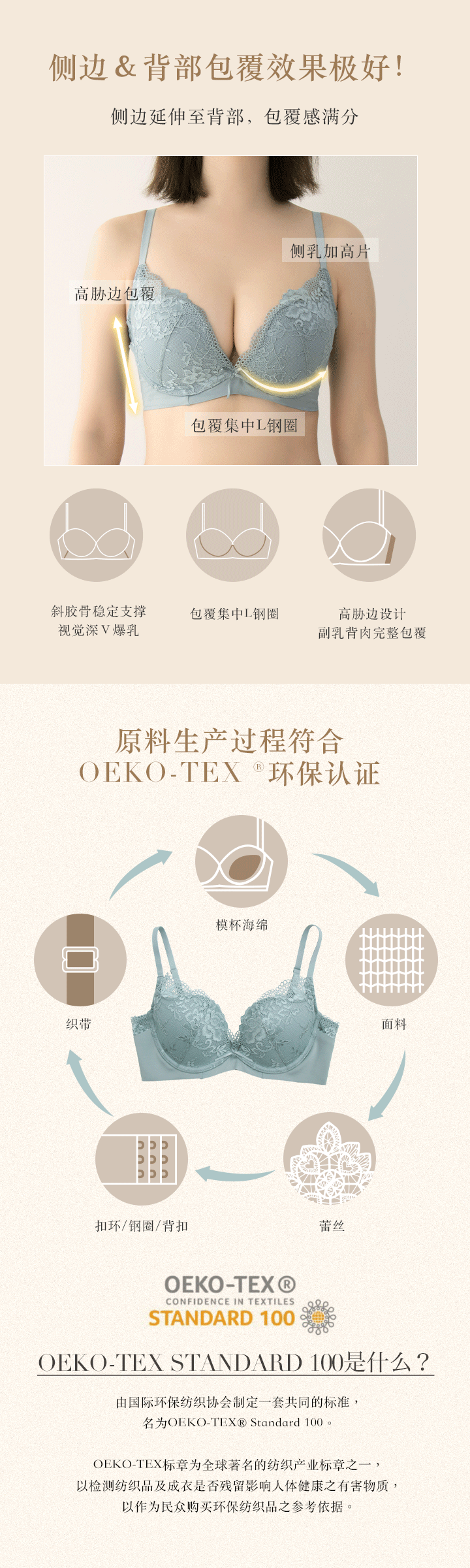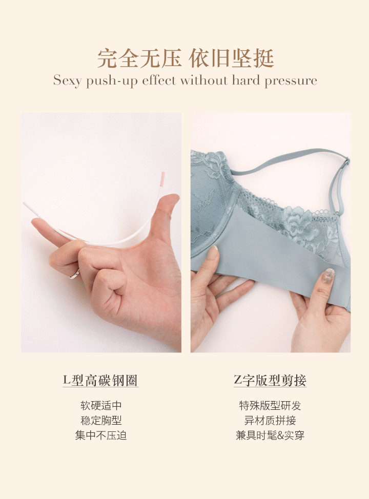 超包覆L型钢圈,结合四分之三深杯,打造浑圆美胸。