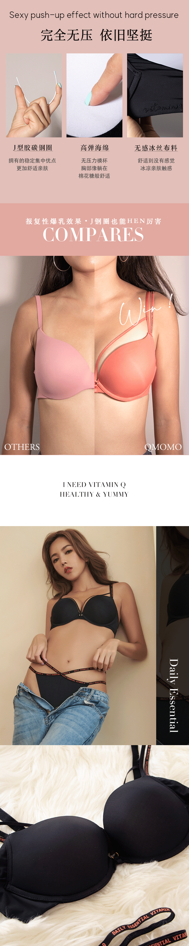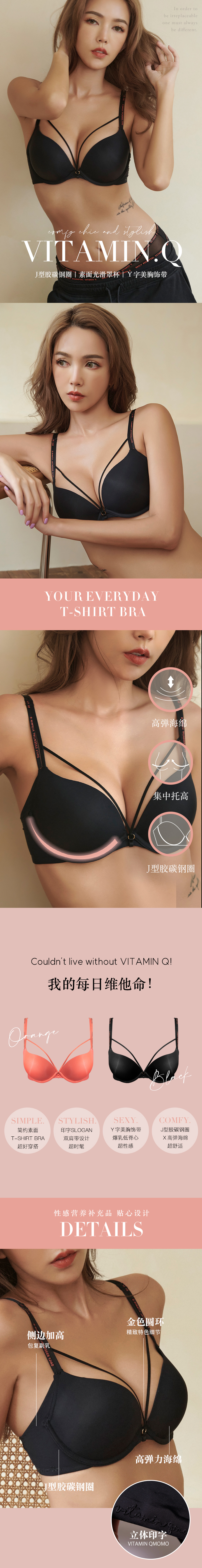 Qmomo【Vitamin Q 维他命】J钢圈简约性感Y字带内衣(魅力黑夜)