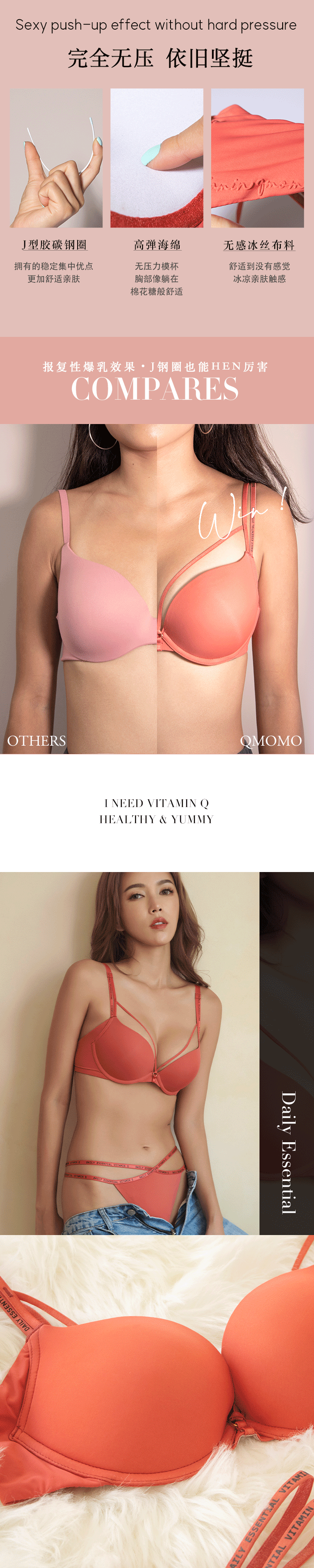 Qmomo【Vitamin Q 维他命】J钢圈简约性感Y字带内衣(活力珊瑚橘)